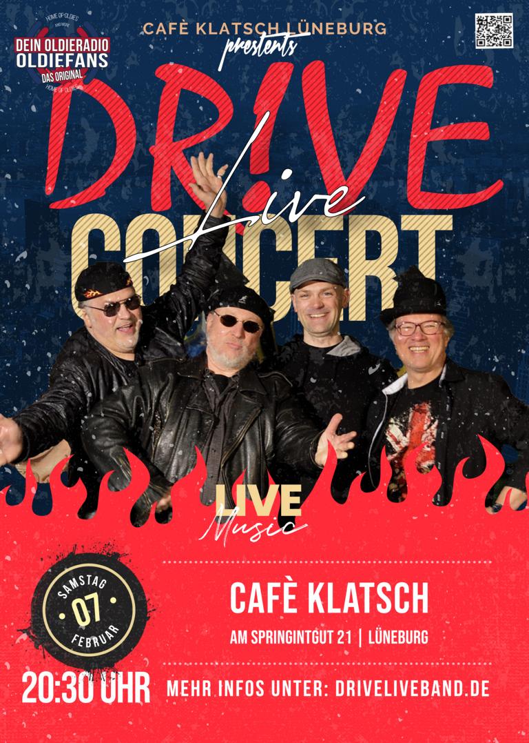 „Drive“ sind drei „alte“ Mucker und ein junger explosiver Drummer aus der Lüneburger Szene mit dem ewigen Hang zur Rockmusik der 70er und 80er. „Drive“ sind aber auch motiviert für aktuellere Titel und jede Menge interessanter musikalische Ausflüge, wie Jazz, Funk, Disco, Fusion.